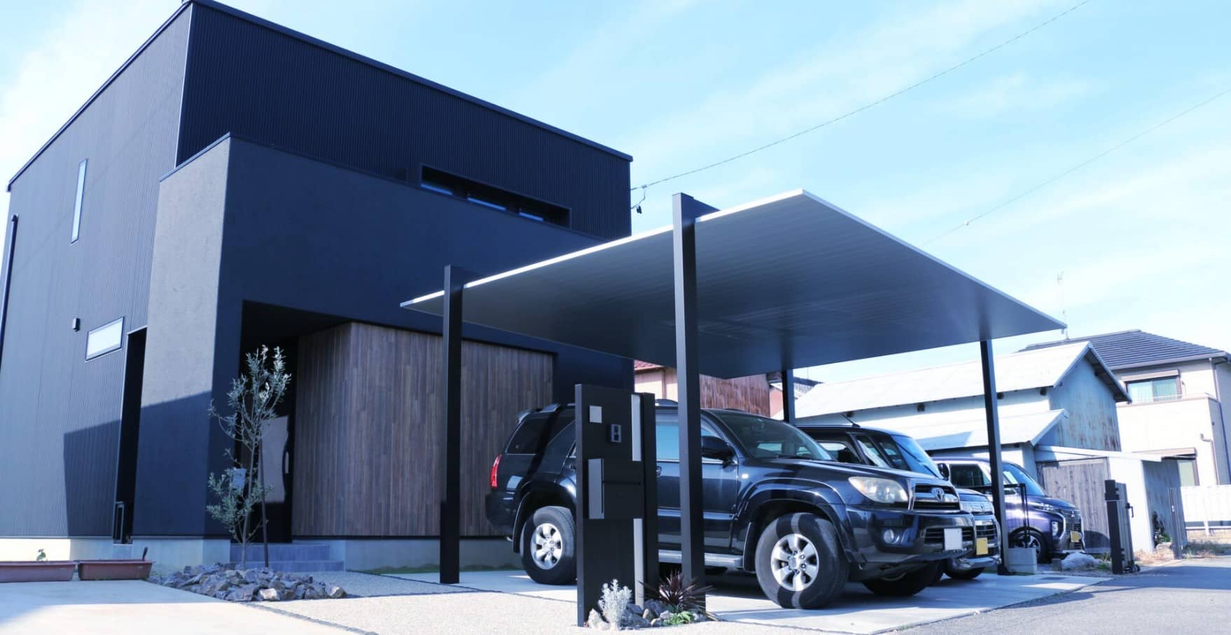 デザイン賞受賞カーポートを設置したモダン外構