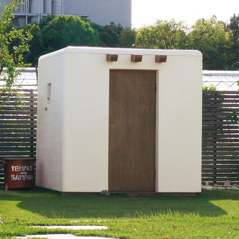 こちらのお宅は、物を収納するだけでなく、物置が隣地との目隠し役も担っています。