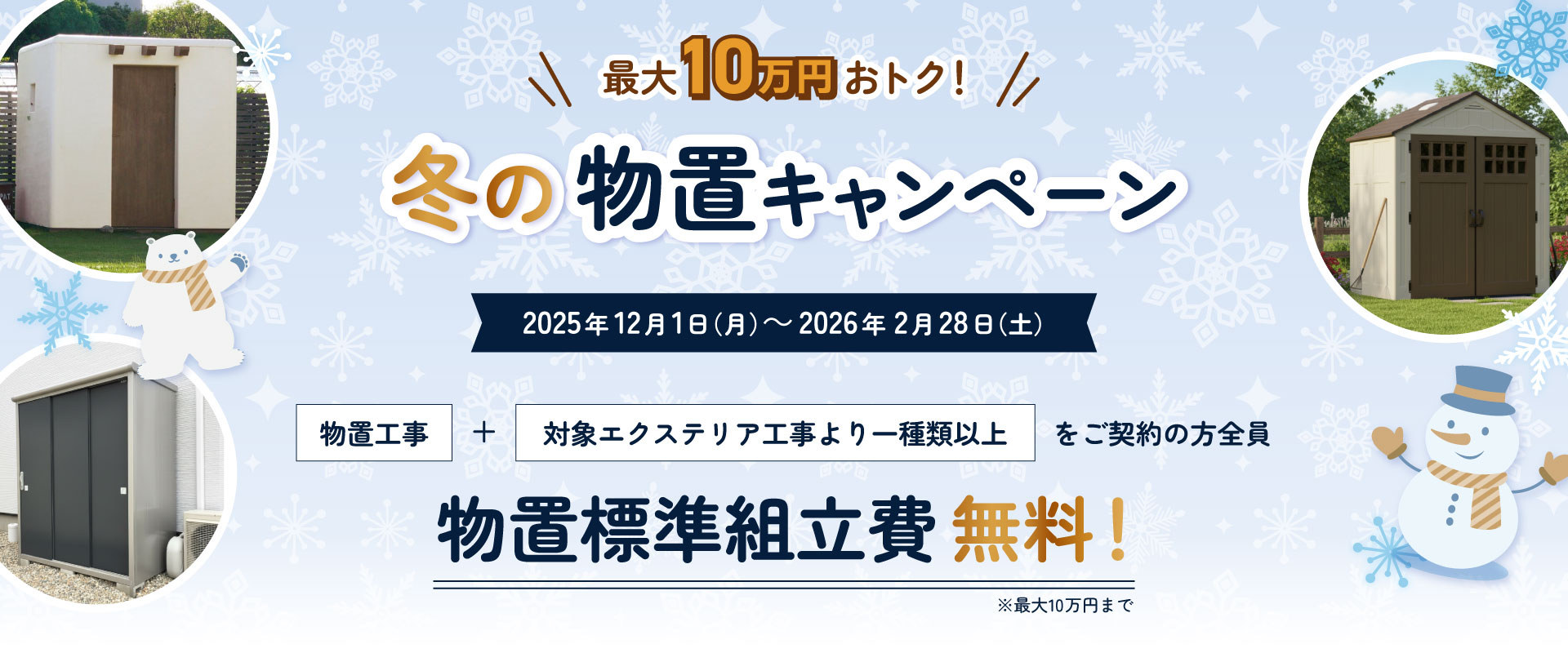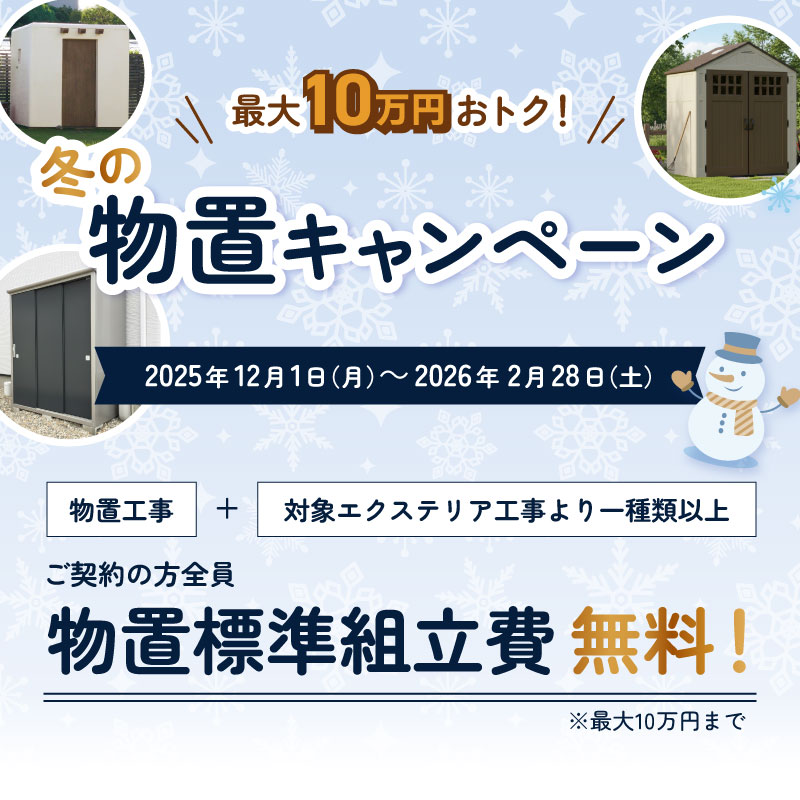 期間中にライフ・ランドにて物置工事とセットで対象のエクステリア工事をご契約いただいたすべてのお客様