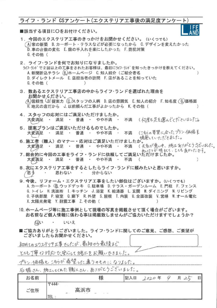 | ライフ・ランドを選んだ理由 | 信頼性、提案力、スタッフの人柄、価格面 |