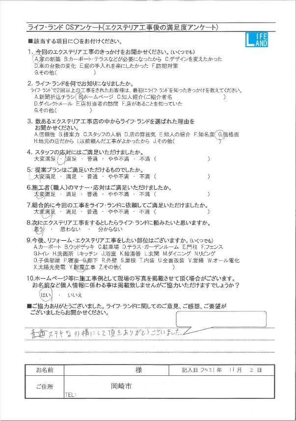 ステキな外構を施工することができ、こちらもうれしく思います!