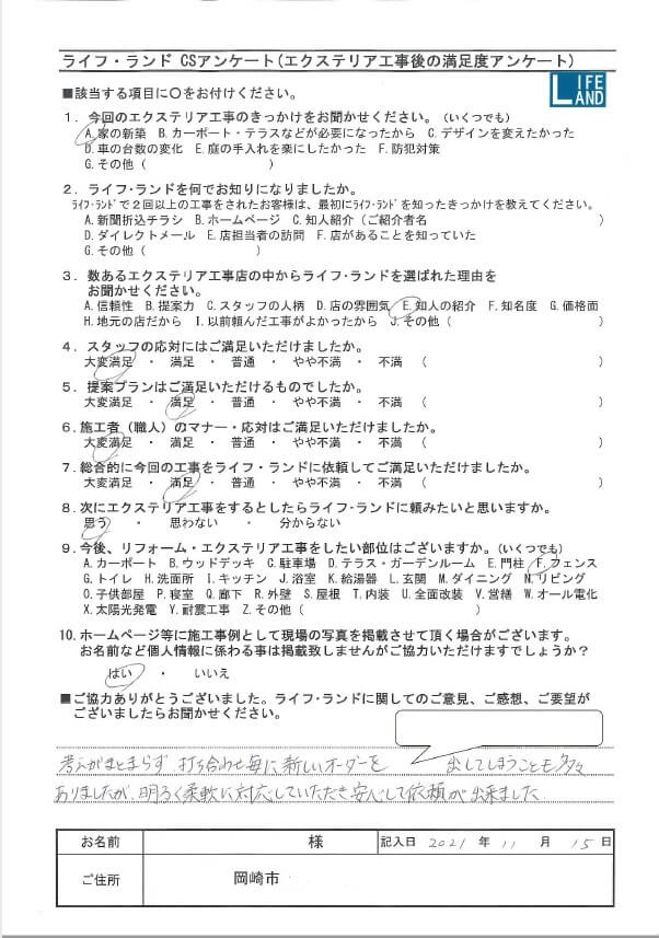 これからもお客様の要望にしっかりと応えていくよう心掛けてまいります。