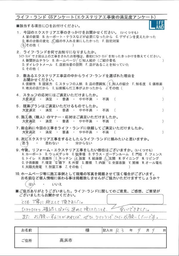 お客様に安心して頂ける対応を今後も続けてまいります。