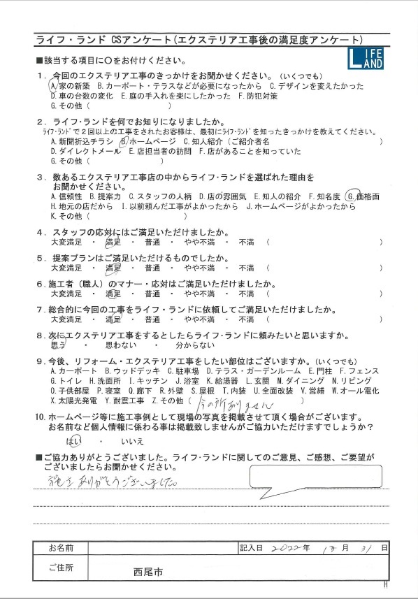 何か外構のことで気になることが出てきましたら、お気軽にご連絡ください。