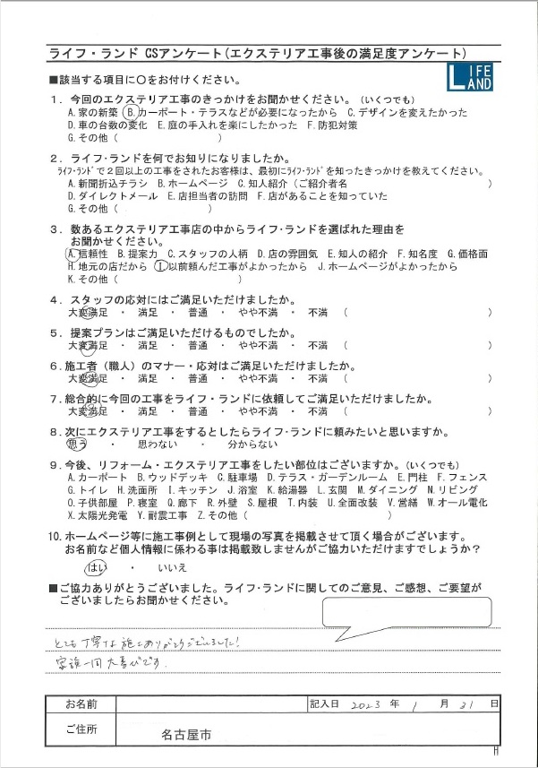 | ライフ・ランドを選んだ理由 | 信頼性、以前頼んだ工事がよかったから |