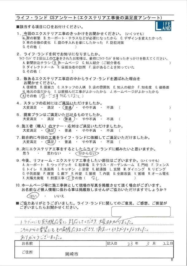 ライフ・ランドを選んだ理由 | その他(ガレージ工事対応できること) |