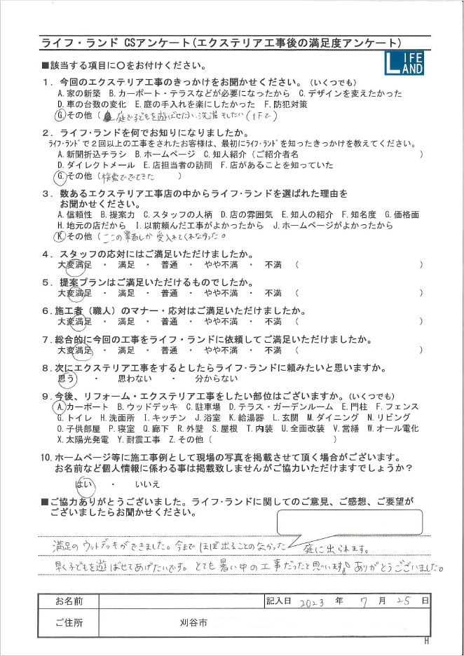 お客様の満足いくウッドデッキができ、嬉しく思います!