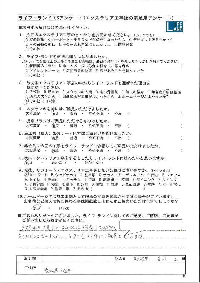 | ライフ・ランドを選んだ理由 | 価格面、その他(値段) |
