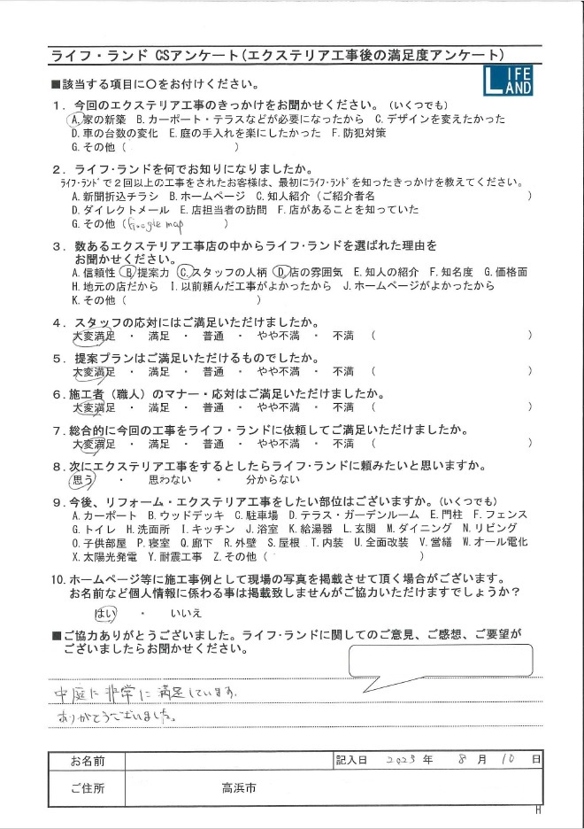 お客様の満足のいく中庭ができ、スタッフ一同大変嬉しく思います!