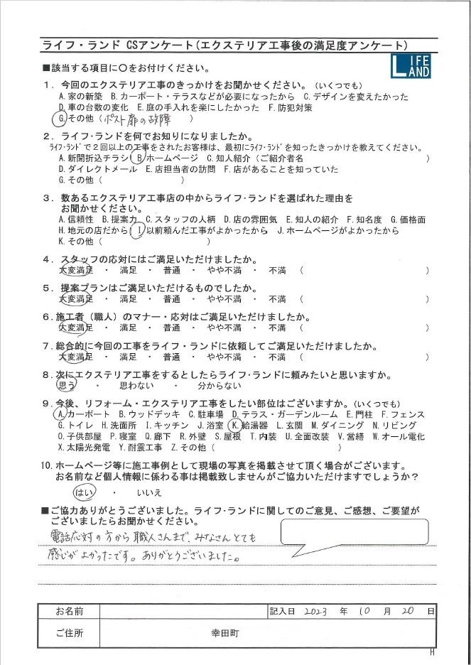 ライフ・ランドを選んだ理由 | 以前頼んだ工事がよかったから |