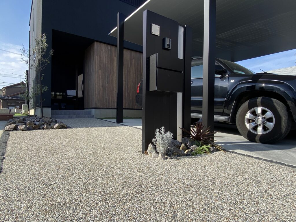 デザイン賞受賞カーポートが印象的な岡崎市の新築外構施工例は以下の通りです。