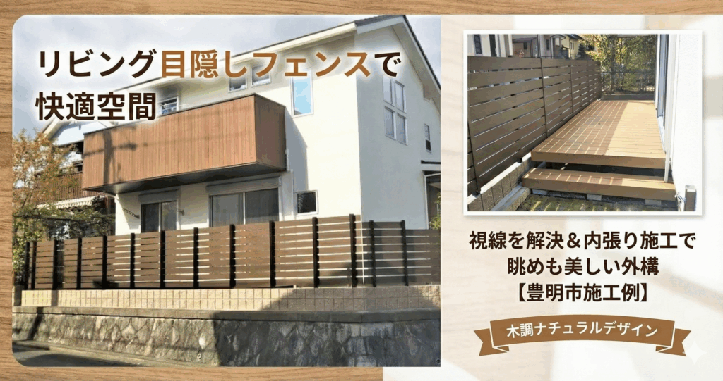 リビングの目隠しフェンスで視線を解決!内張り施工で眺めも美しい外構【豊明市施工例】